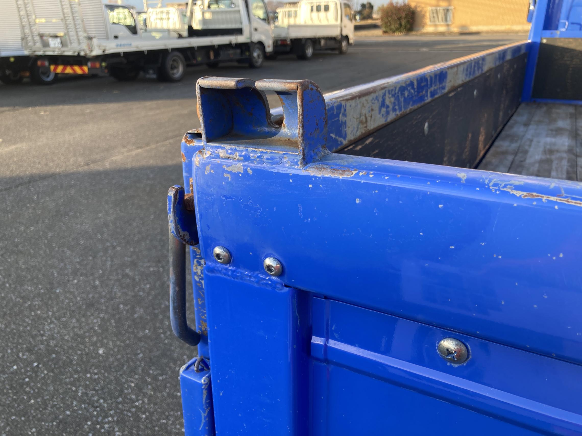 色:青 110kw キーレス 集中ドアロック 左電格ミラー DPDs/w 木製床の上に板張り(ケズレ・割れ) 荷台にルーフラック有 ※ハンドル擦れ シートヘタリ・色あせ・こげ穴 D席フロアマット破れ 看板跡 左アオリ曲がり 右Fコーナーレンズ割れ 左右テールレンズひび Rアオリ上面加工物有 ◆車両総重量:5,555kg ★ ◎ |